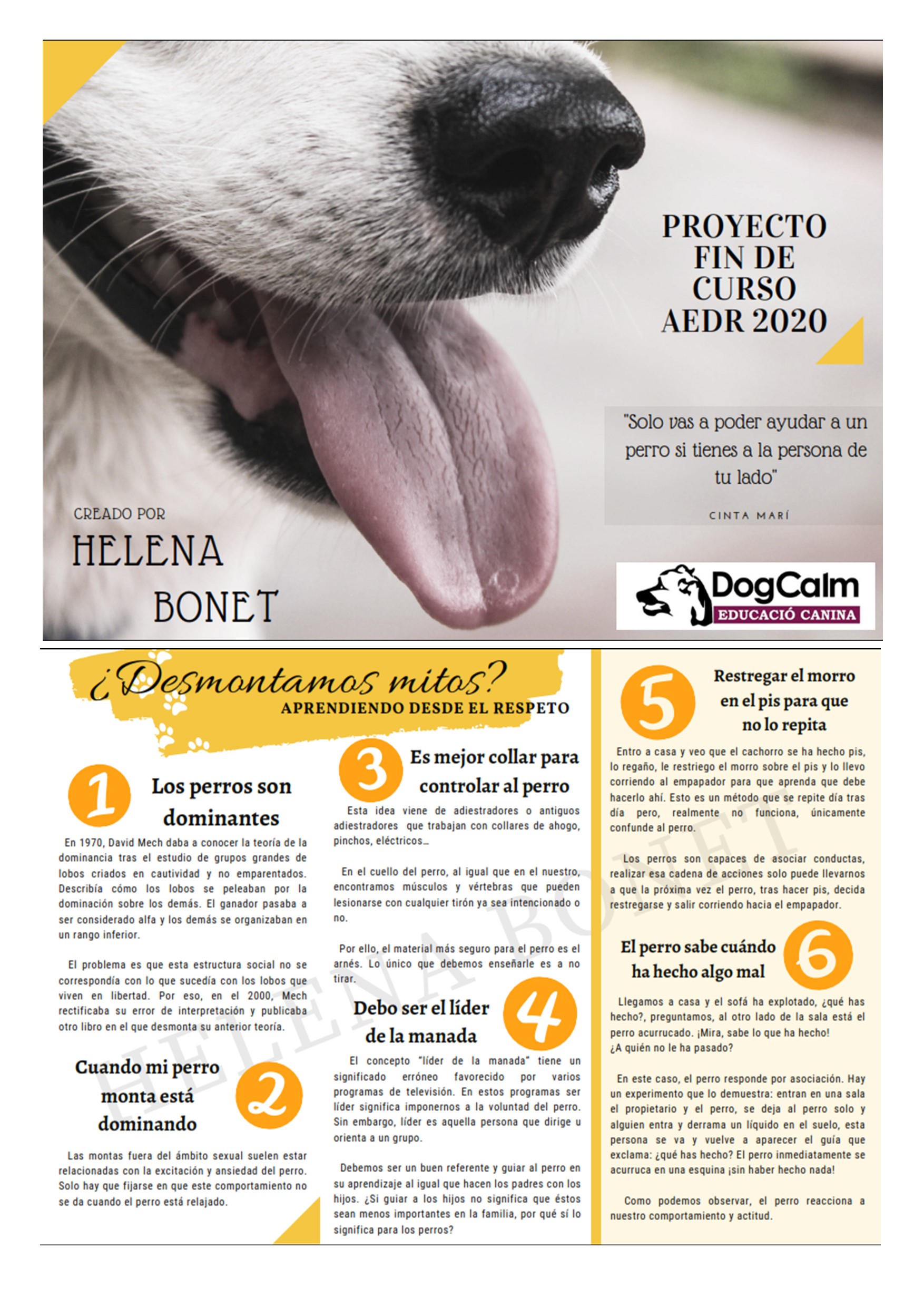 El trabajo consta de 6 apartados, en cada uno se explica una situación desde una perspectiva respetuosa para el perro.
