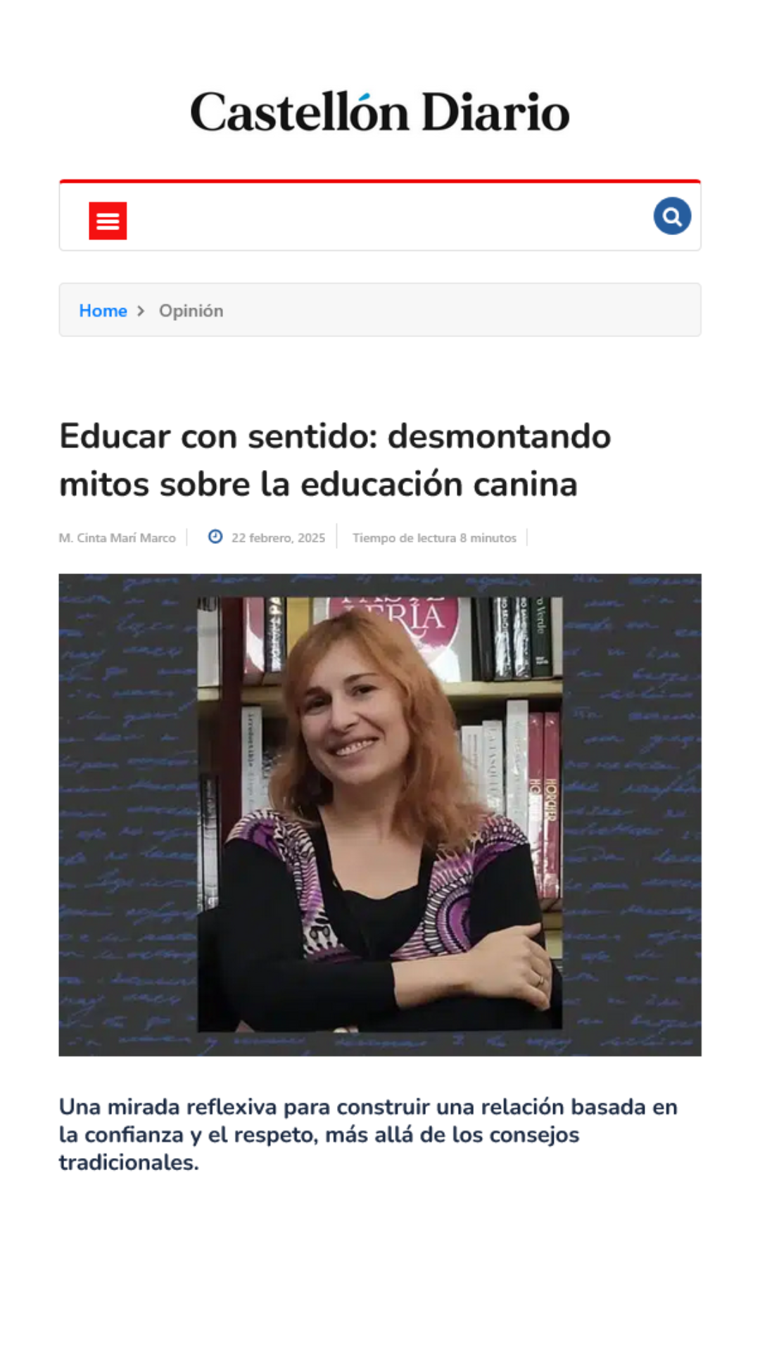 Artículo para el periódico digital Castellón Diario, puedes leerlo en el siguiente enlace: https://castellondiario.com/educar-con-sentido-desmontando-mitos-sobre-la-educacion-canina/